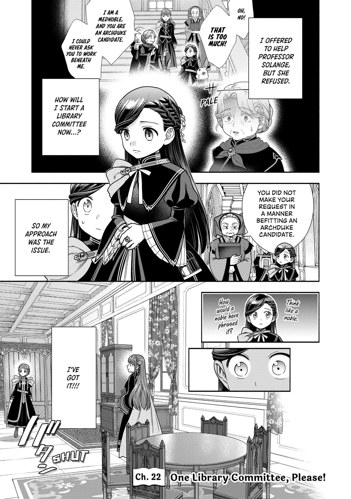 Honzuki No Gekokujou ~Shisho Ni Naru Tame Ni Wa Shudan Wo Erandeiraremasen~ Dai 4-Bu 「 Kizokuin No Toshokan Wo Sukuitai!」 - Chapter 22