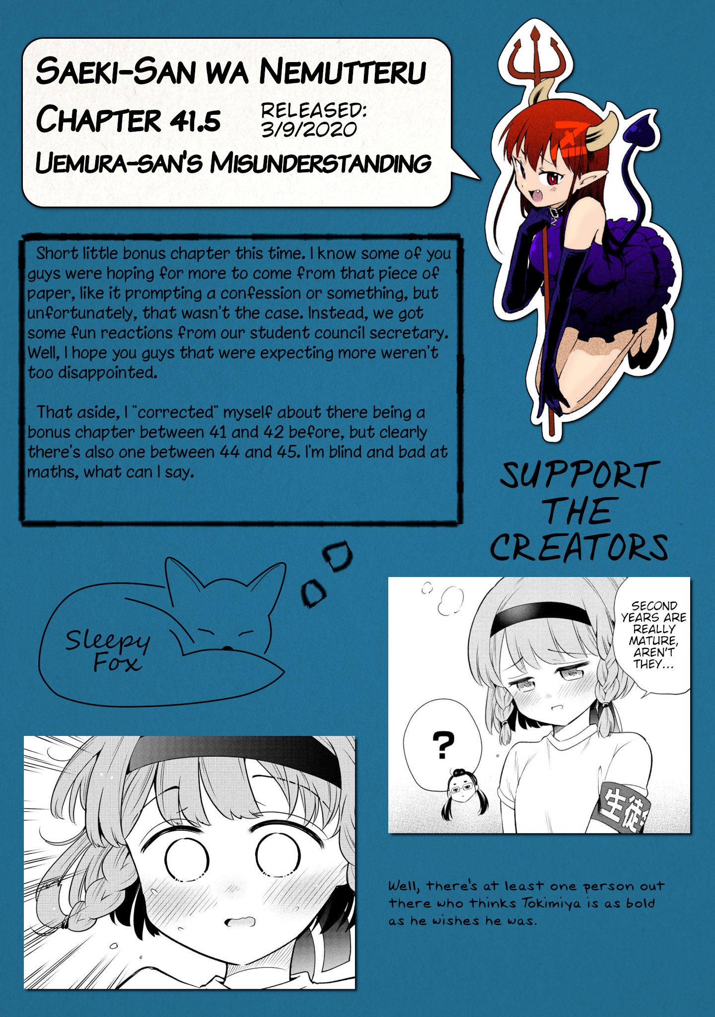 Saeki-San wa Nemutteru - Chapter 41.5