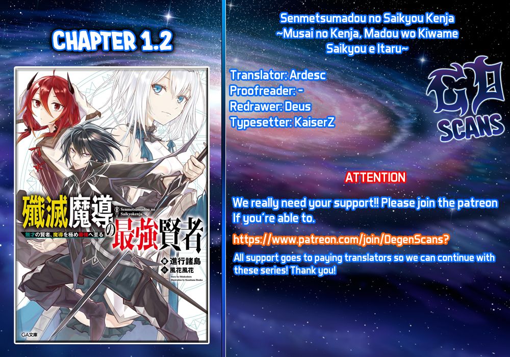 Senmetsumadou no Saikyou Kenja ~Musai no Kenja, Madou wo Kiwame Saikyou e Itaru~ - Chapter 1.2