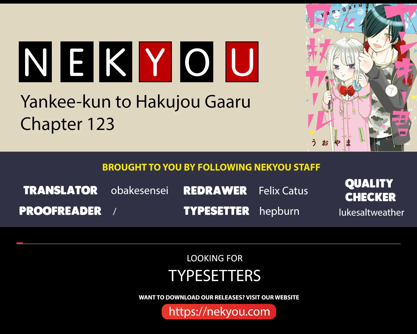 Yankee-kun to Hakujou Gaaru - Chapter 123